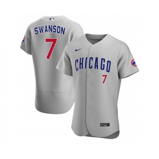Men's Nike Chicago Cubs #7 Dansby Swanson Gray Flex Base Stitched Baseball Jersey