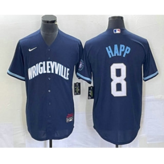 Men's Nike Chicago Cubs #8 Ian Happ Navy City Connect Cool Base Stitched Baseball Jersey