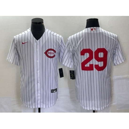 >Men's Nike Cincinnati Reds #29 TJ Friedl White Field of Dreams Stitched Baseball Jersey