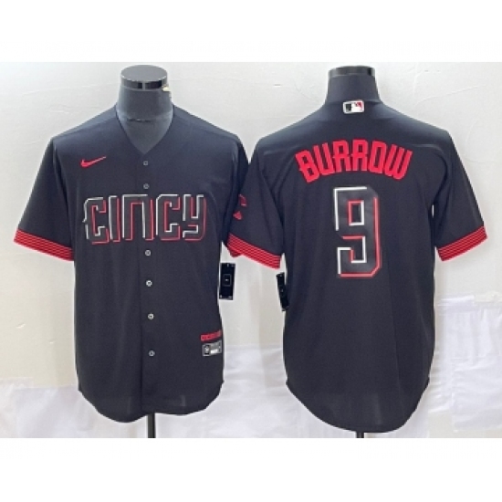 Men's Nike Cincinnati Reds #9 Joe Burrow Black 2023 City Connect Cool Base Stitched Baseball Jersey