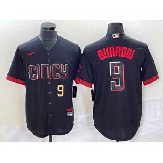 Men's Nike Cincinnati Reds #9 Joe Burrow Black 2023 City Connect Cool Base Stitched Baseball Jersey