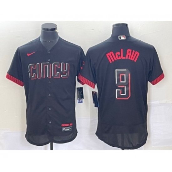 Men's Nike Cincinnati Reds #9 Matt McLain Number Black 2023 City Connect Flex Base Stitched Jersey1