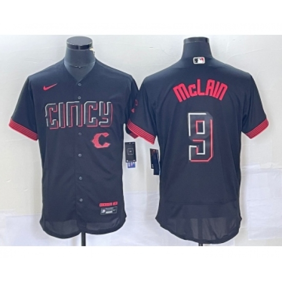 Men's Nike Cincinnati Reds #9 Matt McLain Black 2023 City Connect Flex Base Stitched Jersey1