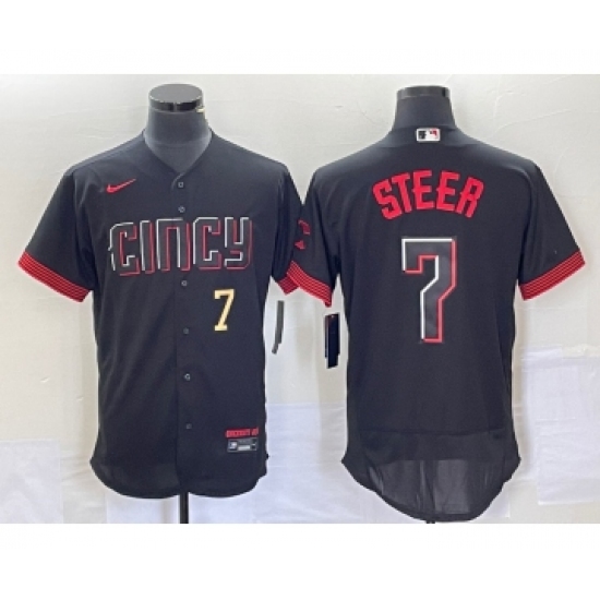 Men's Nike Cincinnati Reds Spencer Steer Number Black 2023 City Connect Flex Base Stitched Jersey1