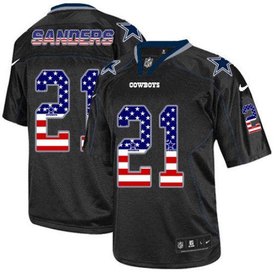 Men's Nike Dallas Cowboys #21 Deion Sanders Elite Black USA Flag Fashion NFL Jersey