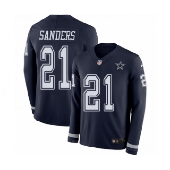 Men's Nike Dallas Cowboys #21 Deion Sanders Limited Navy Blue Therma Long Sleeve NFL Jersey