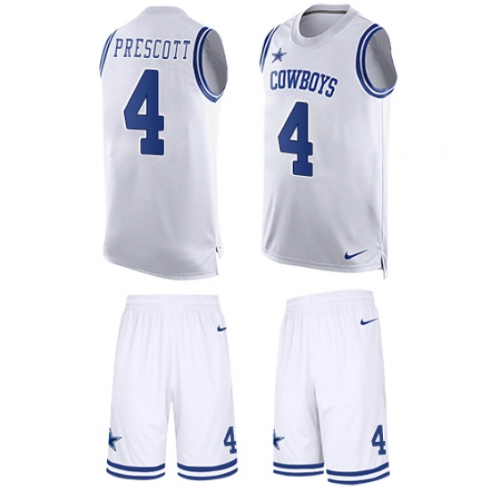 Men's Nike Dallas Cowboys #4 Dak Prescott Limited White Tank Top Suit NFL Jersey
