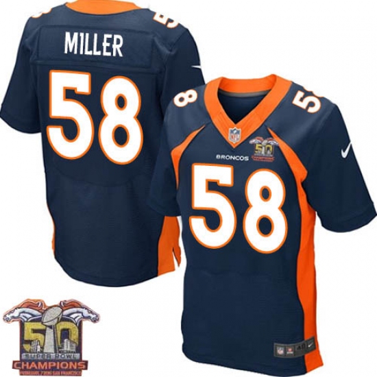 Men's Nike Denver Broncos #58 Von Miller Elite Navy Blue Alternate Super Bowl 50 Champions NFL Jersey