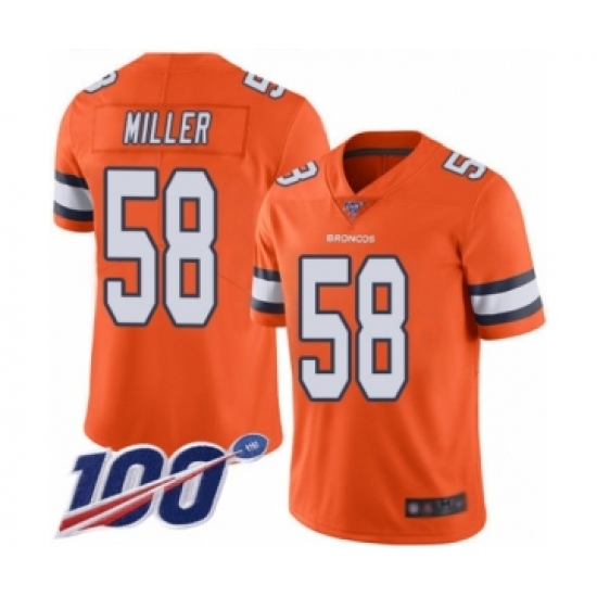 Men's Nike Denver Broncos #58 Von Miller Limited Orange Rush Vapor Untouchable 100th Season NFL Jersey