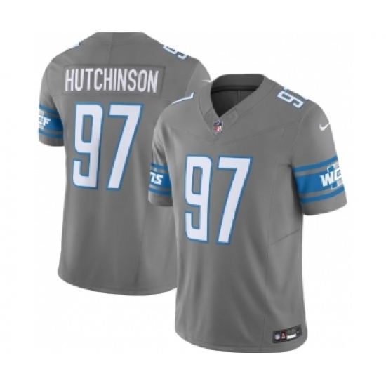 Men's Nike Detroit Lions #97 Aidan Hutchinson Grey 2023 F.U.S.E. Vapor Untouchable Limited Football Stitched Jersey