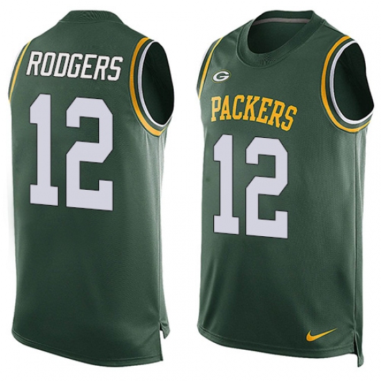 Home>NFL>Green Bay Packers>Aaron Rodgers>Men's Nike Green Bay Packers #12 Aaron Rodgers Limited Green Player Name & Number Tank Top NFL Jersey