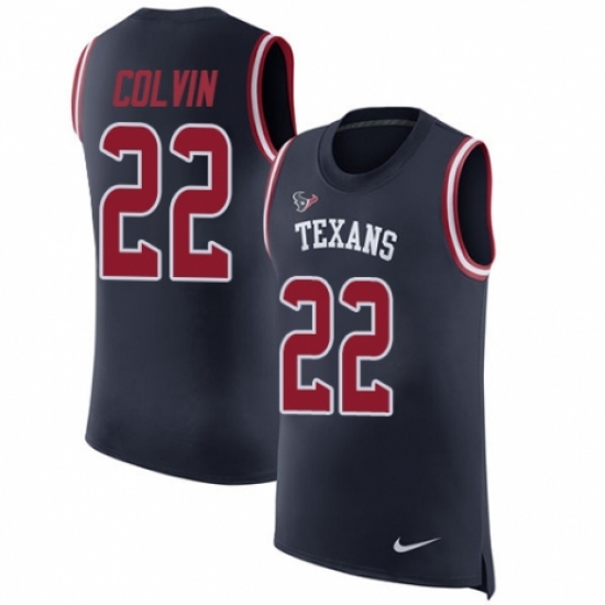 Men's Nike Houston Texans #22 Aaron Colvin Navy Blue Rush Player Name & Number Tank Top NFL Jersey