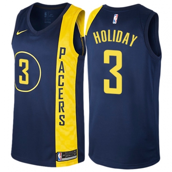 >Men's Nike Indiana Pacers #3 Aaron Holiday Swingman Navy Blue NBA Jersey - City Edition