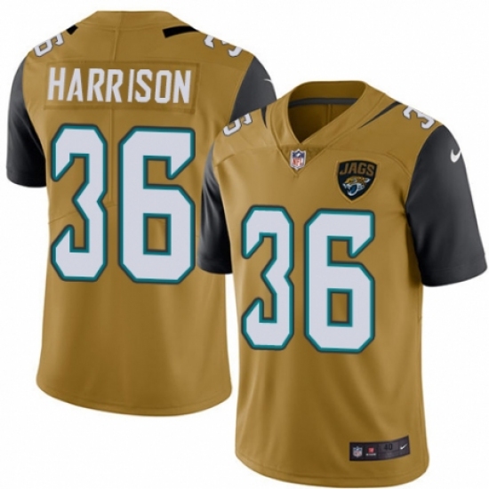 Men's Nike Jacksonville Jaguars #36 Ronnie Harrison Limited Gold Rush Vapor Untouchable NFL Jersey