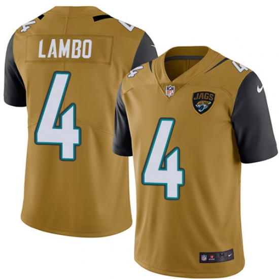 Home>NFL>Jacksonville Jaguars>Josh Lambo>Men's Nike Jacksonville Jaguars #4 Josh Lambo Limited Gold Rush Vapor Untouchable NFL Jersey