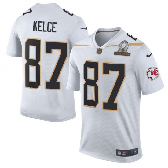 Men's Nike Kansas City Chiefs #87 Travis Kelce Elite White Team Rice 2016 Pro Bowl NFL Jersey