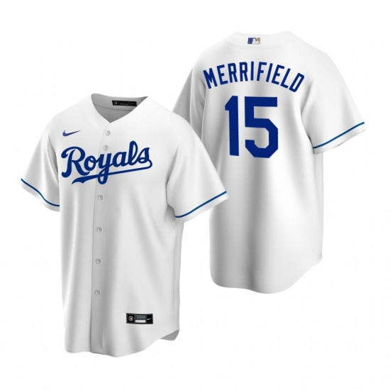 Men's Nike Kansas City Royals #15 Whit Merrifield White Home Stitched Baseball Jersey