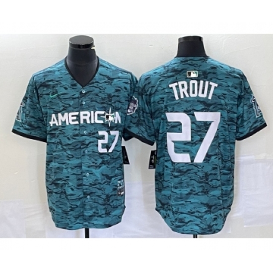 Men's Nike Los Angeles Angels #27 Mike Trout Number Teal 2023 All Star Cool Base Stitched Jersey