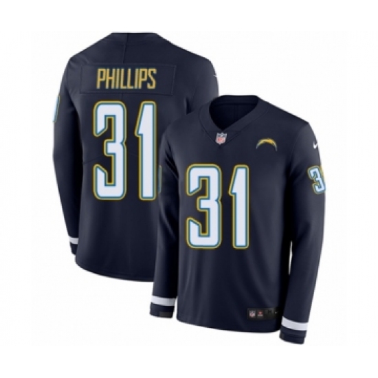 >Men's Nike Los Angeles Chargers #31 Adrian Phillips Limited Navy Blue Therma Long Sleeve NFL Jersey