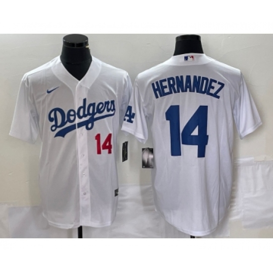 Men's Nike Los Angeles Dodgers #14 Enrique Hernandez Number White Stitched Cool Base Jersey