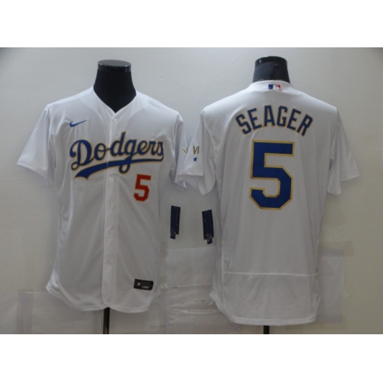 Men's Majestic Los Angeles Dodgers #5 Corey Seager Authentic White 2016 Father's Day Fashion Flex Base MLB Jersey