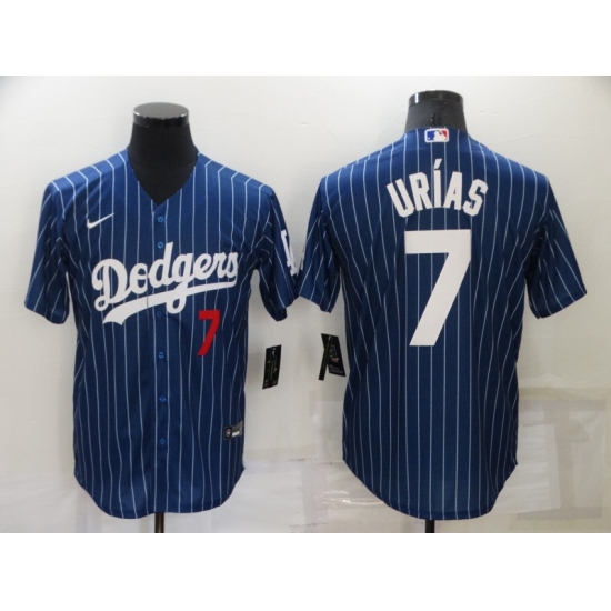 >Men's Nike Los Angeles Dodgers #7 Julio Urias Blue Stripes Authentic Jersey