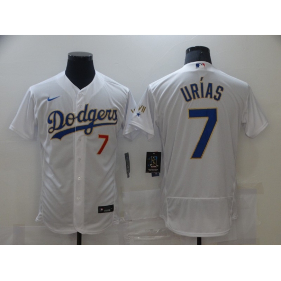 >Men's Nike Los Angeles Dodgers #7 Julio Urias White Champions Authentic Jersey