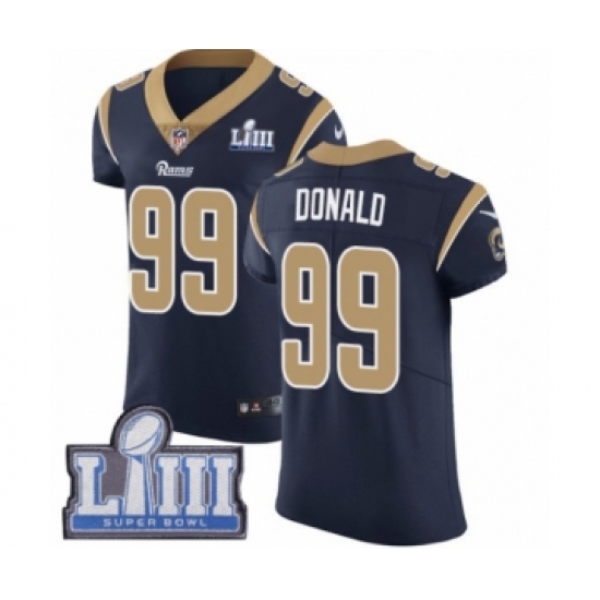 >Men's Nike Los Angeles Rams #99 Aaron Donald Navy Blue Team Color Vapor Untouchable Elite Player Super Bowl LIII Bound NFL Jersey