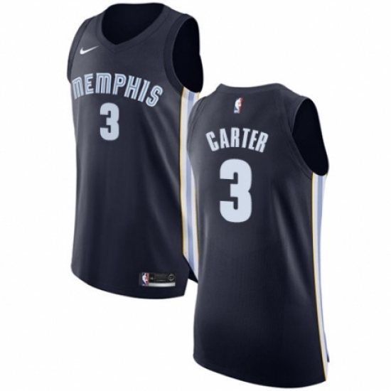 >Men's Nike Memphis Grizzlies #3 Jevon Carter Authentic Navy Blue Road NBA Jersey - Icon Edition