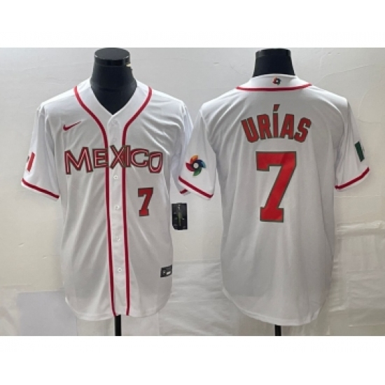 Men's Mexico Baseball #7 Julio Urias 2023 White World Classic Stitched Jersey