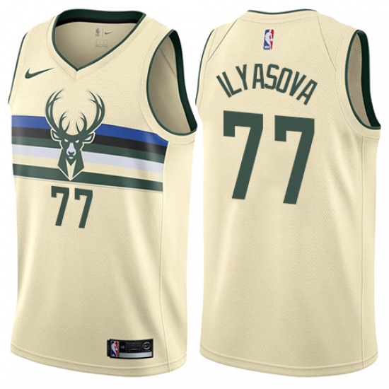 >Men's Nike Milwaukee Bucks #77 Ersan Ilyasova Swingman Cream NBA Jersey - City Edition