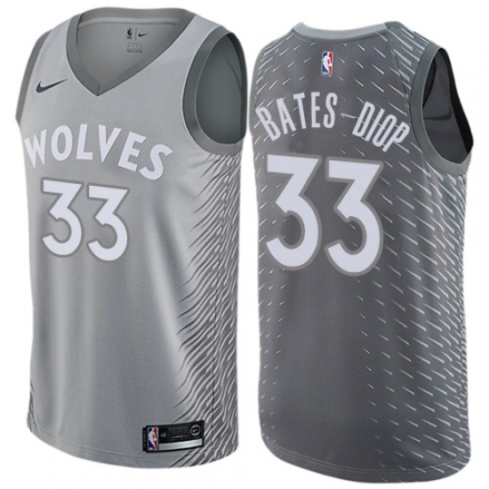 >Men's Nike Minnesota Timberwolves #33 Keita Bates-Diop Swingman Gray NBA Jersey - City Edition