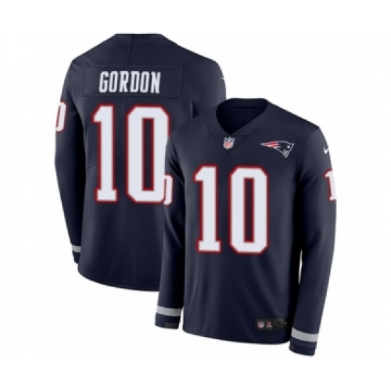 Men's Nike New England Patriots #10 Josh Gordon Limited Navy Blue Therma Long Sleeve NFL Jersey