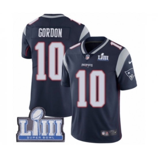 Men's Nike New England Patriots #10 Josh Gordon Navy Blue Team Color Vapor Untouchable Limited Player Super Bowl LIII Bound NFL Jersey