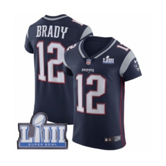 Men's Nike New England Patriots #12 Tom Brady Navy Blue Team Color Vapor Untouchable Elite Player Super Bowl LIII Bound NFL Jersey