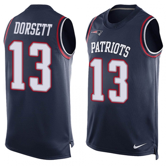 Home>NFL>New England Patriots>Phillip Dorsett>Men's Nike New England Patriots #13 Phillip Dorsett Limited Navy Blue Player Name & Number Tank Top NFL Jersey