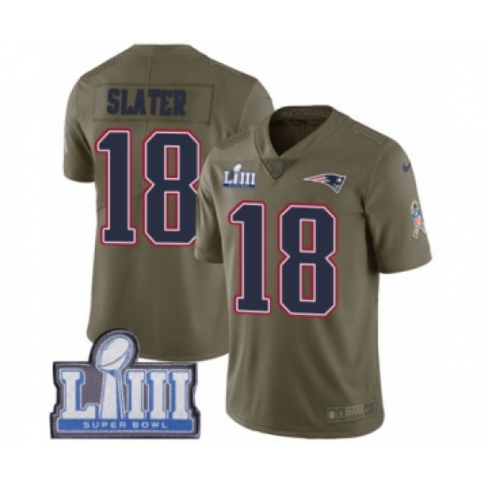 >Men's Nike New England Patriots #18 Matthew Slater Limited Olive 2017 Salute to Service Super Bowl LIII Bound NFL Jersey