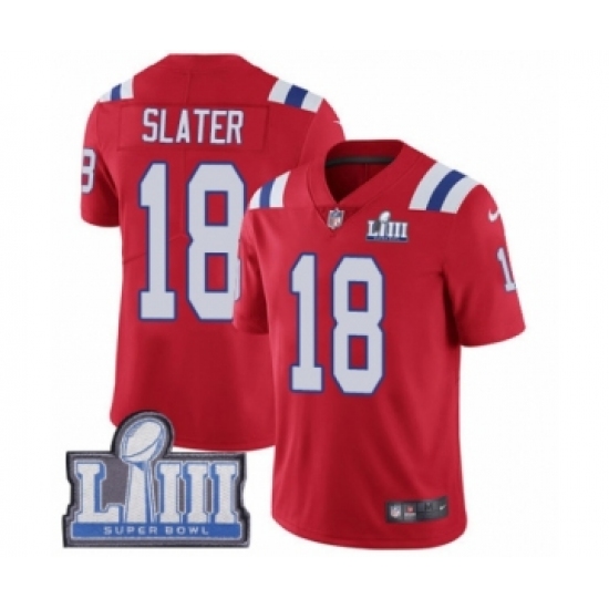 >Men's Nike New England Patriots #18 Matthew Slater Red Alternate Vapor Untouchable Limited Player Super Bowl LIII Bound NFL Jersey