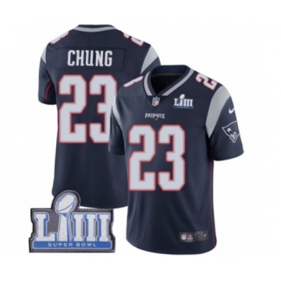 >Men's Nike New England Patriots #23 Patrick Chung Navy Blue Team Color Vapor Untouchable Limited Player Super Bowl LIII Bound NFL Jersey