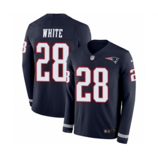 Men's Nike New England Patriots #28 James White Limited Navy Blue Therma Long Sleeve NFL Jersey