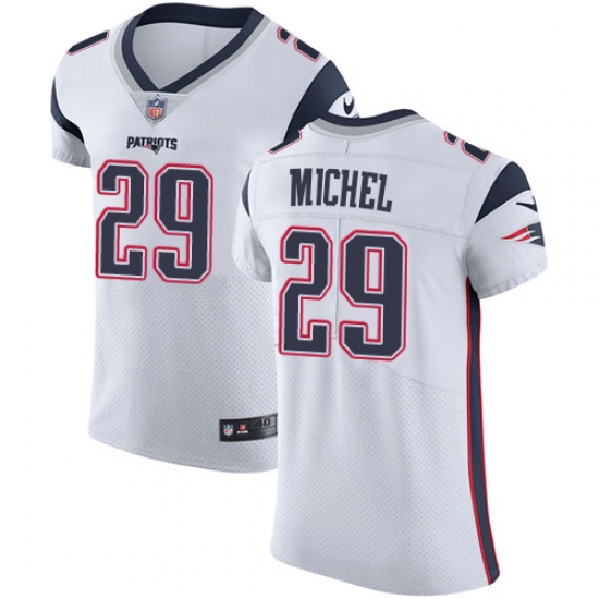>Men's Nike New England Patriots #29 Sony Michel White Vapor Untouchable Elite Player NFL Jersey