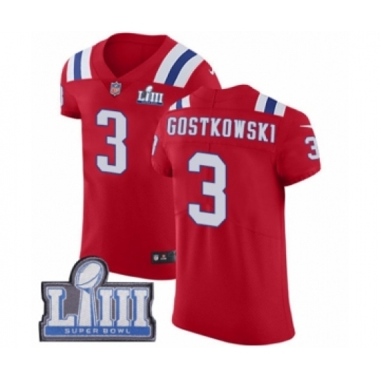 >Men's Nike New England Patriots #3 Stephen Gostkowski Red Alternate Vapor Untouchable Elite Player Super Bowl LIII Bound NFL Jersey