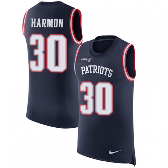 Men's Nike New England Patriots #30 Duron Harmon Limited Navy Blue Rush Player Name & Number Tank Top NFL Jersey