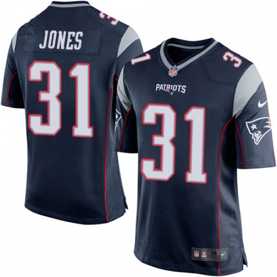 >Men's Nike New England Patriots #31 Jonathan Jones Game Navy Blue Team Color NFL Jersey