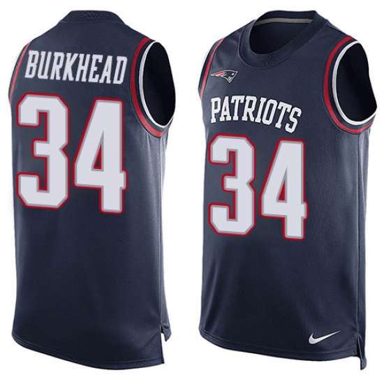 Home>NFL>New England Patriots>Rex Burkhead>Men's Nike New England Patriots #34 Rex Burkhead Limited Navy Blue Player Name & Number Tank Top NFL Jersey