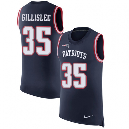 Men's Nike New England Patriots #35 Mike Gillislee Limited Navy Blue Rush Player Name & Number Tank Top NFL Jersey