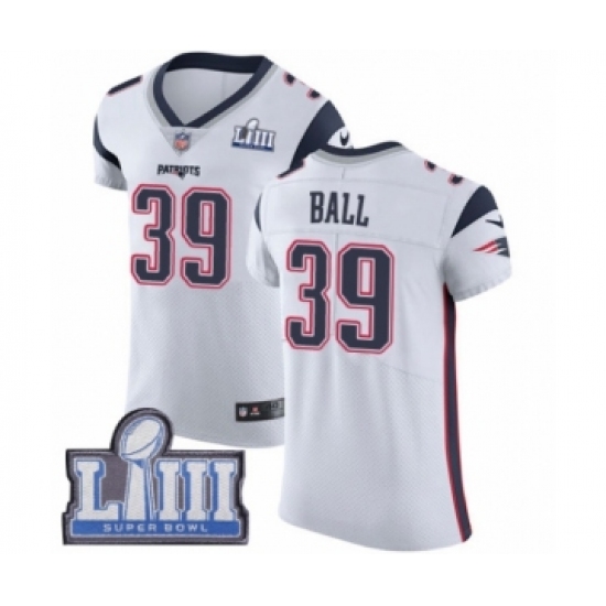 >Men's Nike New England Patriots #39 Montee Ball White Vapor Untouchable Elite Player Super Bowl LIII Bound NFL Jersey
