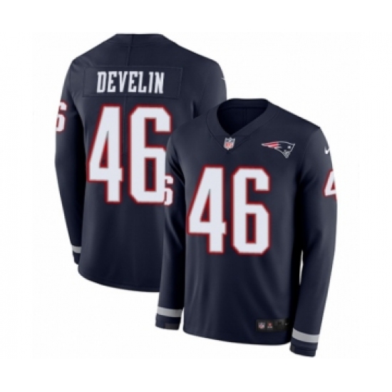 Men's Nike New England Patriots #46 James Develin Limited Navy Blue Therma Long Sleeve NFL Jersey