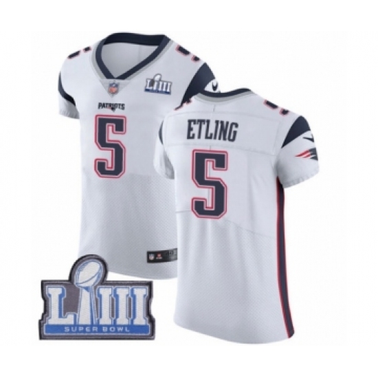 Men's Nike New England Patriots #5 Danny Etling White Vapor Untouchable Elite Player Super Bowl LIII Bound NFL Jersey