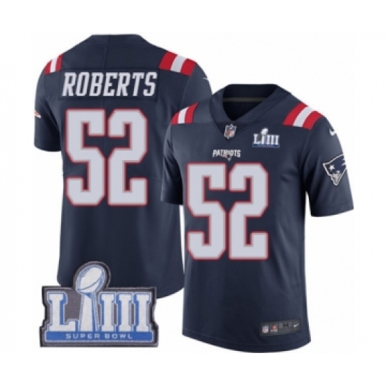 Men's Nike New England Patriots #52 Elandon Roberts Limited Navy Blue Rush Vapor Untouchable Super Bowl LIII Bound NFL Jersey